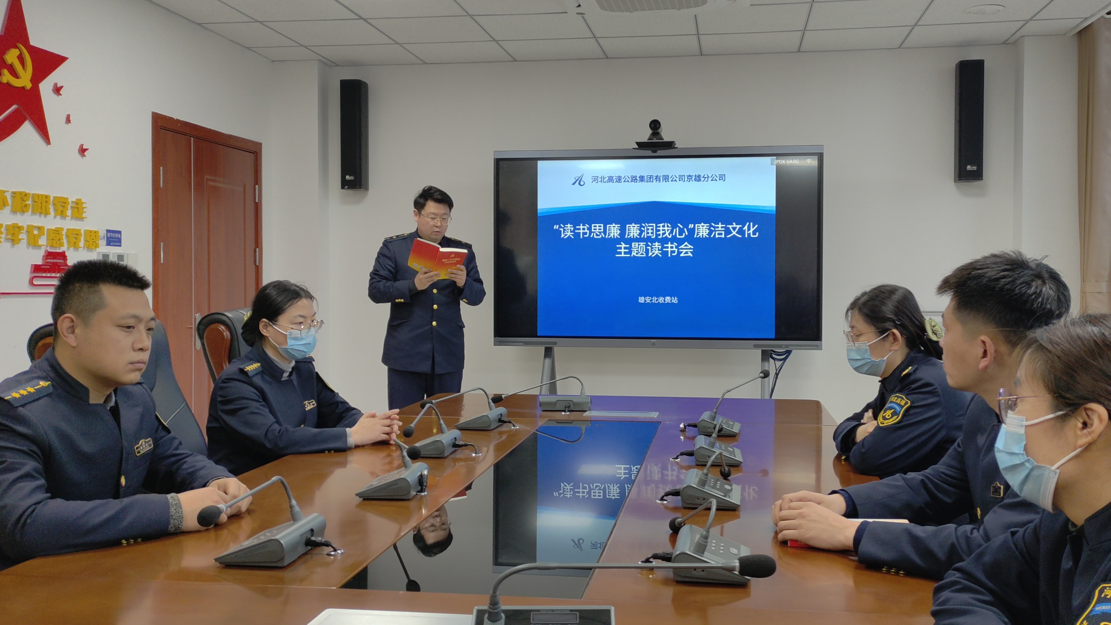为深入推进廉政文化建设,积极落实集团纪委《关于“扬新风正气 严教育整顿 建清廉国企” 廉洁文化宣传月实施方案》文件精神,营造“爱读书、读好书、善读书”的浓厚氛围和良好学风,增强干部职工的廉洁从业意识,近日,京雄分公司雄安北收费站组织开展以“读书思廉 廉润我心 ”为主题的廉洁文化读书会。