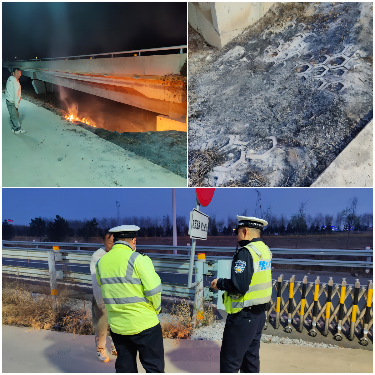 深夜时分,一位行为怪异的男子在不远处的路边引起了收费站工作人员的注意。只见他孤独地坐在草丛旁,身边竟然点燃了一堆小火。夜色中,火光显得格外醒目,也充满了危险。